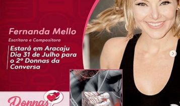 No dia 31 de julho a escritora e compositora Fernanda Mello estará em Aracaju para uma conversa coletiva sobre relacionamentos abusivos. O evento ‘Donnas da Conversa’ é uma iniciativa do ‘Donas de Si’, um movimento de protagonismo feminino que promove reuniões com participações de mulheres inspiradoras.