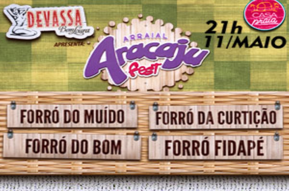 Em sua 8ª edição o Arraial Aracajufest acontece no dia 11 de Maio (Sábado), na Casa de Praia (Rod. José Sarney, 1km após a AABB), a partir das 21h. Mais uma vez, um evento de alto padrão de qualidade que chega com uma proposta sempre inovadora, trazendo uma super estrutura de som, palco, iluminação, bar, estacionamento, grandes atrações de forró… Tudo isso em um ambiente que já conquistou a todos e que é o maior sucesso em todos os eventos. E neste ano, a prévia junina mais cobiçada da cidade contará com as apresentações das bandas Forró do Bom, Forró do Muído, Forró da Curtição e Forró Fidapé. Estamos preparando uma festa incrível, venha dançar e curtir com a gente até o amanhecer!