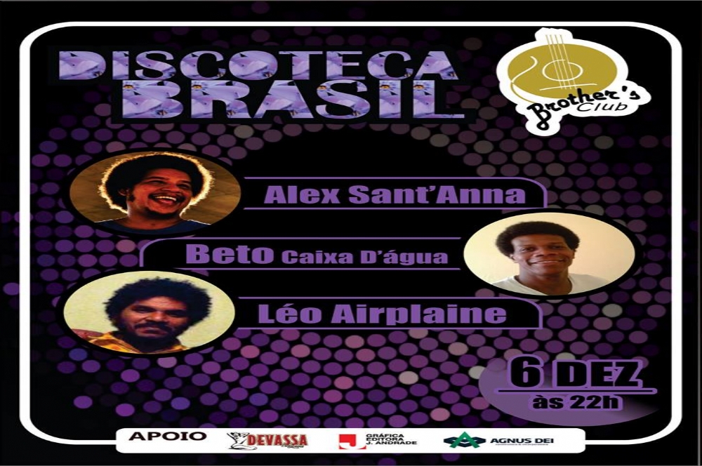 Alex Sant’Anna, Betinho Caixa D’Água e Leo Airplane farão o show “Discoteca Brasil”. A festa acontece neste sábado, 6, a partir das 22h, no Brother’s Club. Informações e reservas através dos telefones (79) 9988 1922.