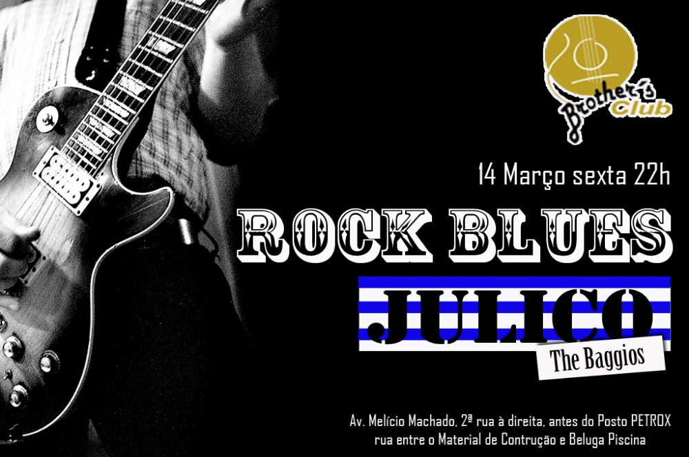 Julico (The Baggios) é a atração dessa sexta-feira, 14, no Brother’s Club. No repertório, rock, blues e músicas autorais. O show começa às 22h e informações podem ser obtidas através do telefone (79) 9988 1922.