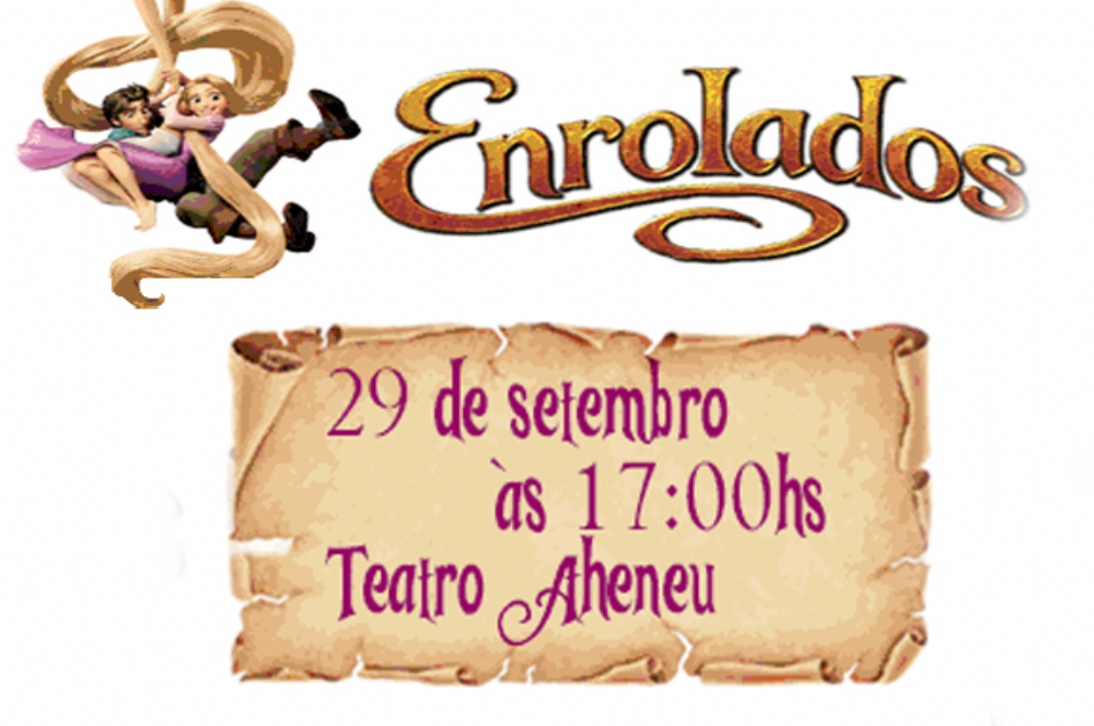 Com uma versão moderna da clássica história de Rapunzel, a peça Enrolados será apresentada no dia 29 de setembro, às 17h, no teatro Atheneu. Essa emocionante e divertida aventura começa quando Flynn Rider, um charmoso bandido encontra, por acaso, Rapunzel, uma bela e sagaz adolescente com metros de cabelos dourados e mágicos.