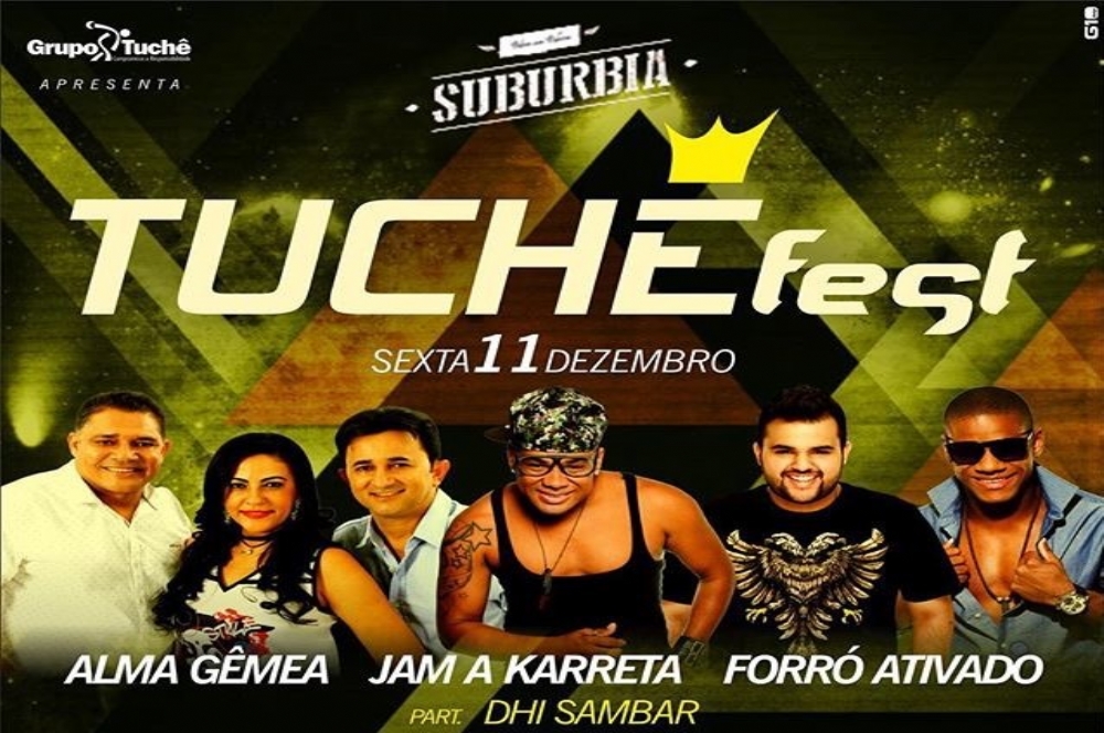 Nesta sexta-feira, 11 de dezembro, a partir das 22 horas, o Suburbia abre as portas para receber a ‘’Tuchê Fest’’ com as bandas Alma Gêmea, Forró Ativado, Jam A Karreta e a participação da Dhi Sambar.