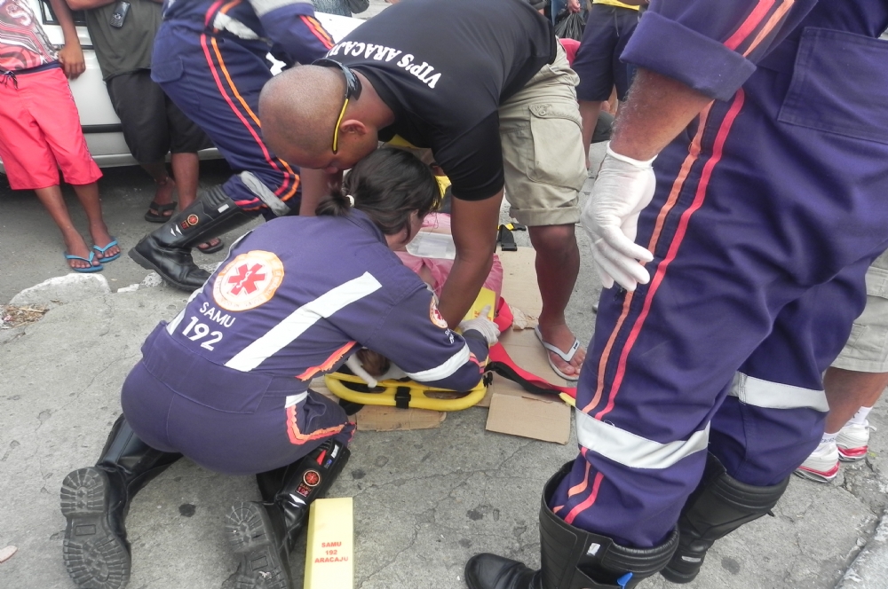 | Vítima em estado de choque foi imobilizada e atendida pelo Samu (Foto: Portal Infonet) |