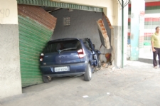 Com a colisão o condutor do Palio perdeu o controle do carro e acabou invadindo um estabelecimento comercial.