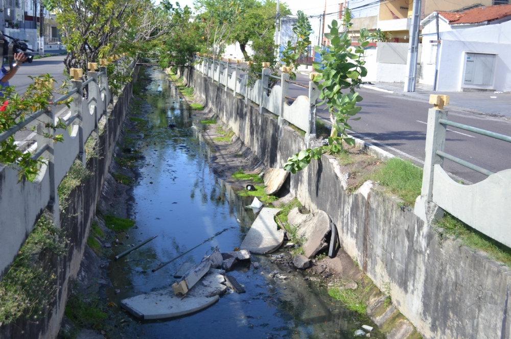 | Acidente faz com que carro caia em canal da avenida Gonçalo Prado Rolemberg (Foto: Portal Infonet) |