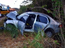 Duas pessoas morreram e outras cinco ficaram gravemente feridas em uma colisão frontal ocorrida na madrugada desta sexta-feira, 7, no Km 108 da BR 101, apenas quatro quilômetros após o posto da Polícia Rodoviária Federal (PRF) em São Cristóvão. No veículo modelo monza estavam as duas vítimas que morreram (Fotos: PRF)