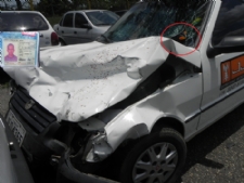 Muito sangue no capô do Fiat Uno, o motorista saiu sem ferimentos