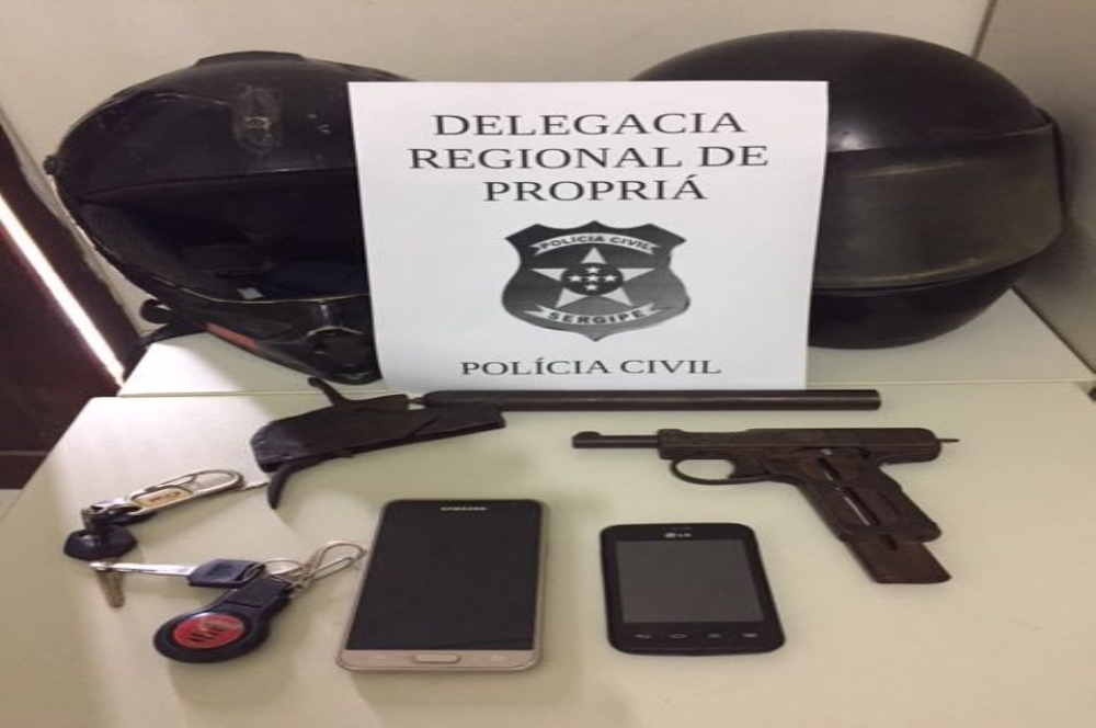 O assalto foi denunciado à equipe da Delegacia Regional de Propriá e os policiais civis iniciaram a investigação, identificando um adolescente que teria tido participação no crime. Na residência do suspeito, os policiais encontraram duas armas de fogo, a moto que teria sido roubada na sexta-feira, 19, e também dois aparelhos de telefone celular, dois capacetes e o bornal da vítima do roubo na rodovia.