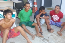 No início da tarde desta quarta-feira, 3, policiais militares da Companhia de Choque e Radiopatrulha foram acionados pelo Centro de Operações em Segurança Pública (Ciosp), para conter a ação de bandidos que segundo populares estavam ameaçando pedestres na invasão dos Canos, localizado no município de Nossa Senhora do Socorro. Alguns dos presos encaminhados ao DHPP / Foto: Portal Infonet
