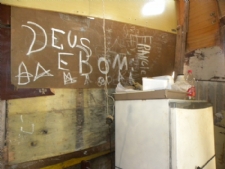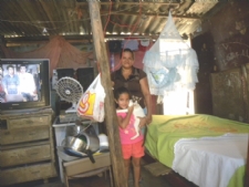 No cenário da vida real, a equipe do Portal Infonet encontrou uma dona de casa que dá lição de perseverança e fé. Aos 40 anos e aparência sofrida, Rísia Alves Santos, é casada, mãe de três filhos e mora no local há dez anos. No barraco que mantém arrumado e limpo, a dona de casa, se orgulha de poder ensinar para os filhos que a educação é prioridade e que sem fé é impossível Comprar um carro, fazer uma viagem de final de ano ou ainda investir na compra de um imóvel. Sonhos que a maioria persiste em alcançar, mas para a dona de casa o pedido é um banheiro. O barraco construído com acabamento de lona, madeira improvisada, papelão, telha de Eternit e chão de areia, não possui banheiro. Constrangida, Rísia conta como improvisa a ida ao banheiro. “Para ir ao banheiro é um sufoco, tem que defecar em uma bolsa plástica e jogar o lixo fora em um local longe, para não contaminar e trazer doença”. Aos seis anos de idade, a filha mais nova da dona de casa, passa a infância sem ter direito a É na frente da televisão que Estefani passa a maior parte do tempo, assistindo e desejando mudar de vida. “Gosto de brincar com meus amigos e meu gatinho branquinha”, diz a tímida menina. “Minha preocupação é que este telhado pode cair a qualquer momento, as vezes olho e vejo que a mão de Deus está segurando esse barraco, porque a madeira está podre”, conta. A mãe, que observa e entende que não pode resolver a situação de forma emergencial, contém as A geladeira improvisada com a porta amarrada com um cordão, tem água, um quilo de arroz, leite já talhado e um pouco de peixe. O alimento que é multiplicado até o próximo pagamento. “Não sei quando vamos poder comprar mais comida”, diz Rísia. Apesar da vida sofrida, a dona de casa lembra que é preciso ter fé. “Ensino aos meus filhos todos os dias que vivemos aqui, mas que podemos mudar de vida. Com a chegada do final de ano, onde muitas famílias organizam ceia natalina, Rísia tenta ensinar para os filhos que o importante é a união. Para quem desejar ajudar essa família com o concerto do telhado ou doação de alimentos pode entrar em contato através do (079) 81673039. Prefeitura A informação da prefeitura de São Cristovão é que já existe um cadastro, onde todas as famílias foram incluídas no programa do Governo Federal, “Minha Casa, Minha Vida”. De acordo com a assistente social do Centro de Referência da Assistência Social (Cras) da prefeitura de São A assistente também salientou que tem feito um trabalho para tentar acompanhar idosos e crianças com problemas de saúde para ter direito a aposentadoria. Sobre a família em questão, a assistente social, informou que na próxima semana acompanhará a equipe do Portal Infonet para conhecer a situação da família. Por Kátia Susanna