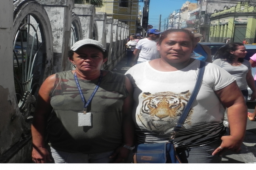 | As vendedoras Rita de Cássia Santana e Rosemary Mota pedem ponto fixo |