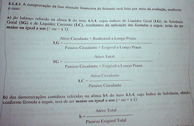 Já a Ecos, segundo a ata da reunião, não apresentou todos os índices solicitados no item 4.1.4.1 do edital que tinham como função demonstrar a boa situação financeira da empresa.