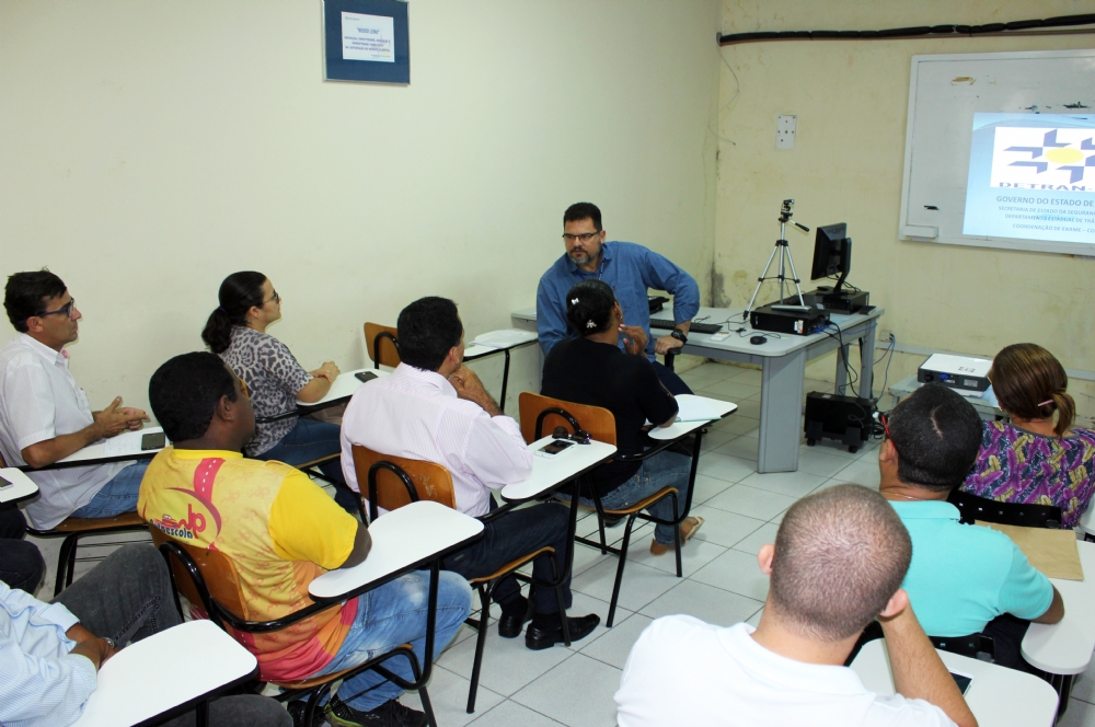 Representantes do Departamento Estadual de Trânsito (Detran/SE) se reuniram na última sexta-feira, dia 21, com proprietários dos Centros de Formação de Condutores (CFCs) de todo o Estado com o objetivo de apresentar as mudanças que serão implementadas na realização dos Exames Práticos de direção veicular. A medida deve valer a partir do dia 21 de agosto e visa aprimorar a qualidade do sistema de avaliações dos candidatos à primeira habilitação, adição ou mudança de categorias. Estiveram presentes o diretor-presidente do Detran, cel. Luiz de Azevedo; o diretor de Operações, Cleber Fonseca; o gerente de Habilitação, Anderson Barreto, e o coordenador de Exames, Lucival Vieira.