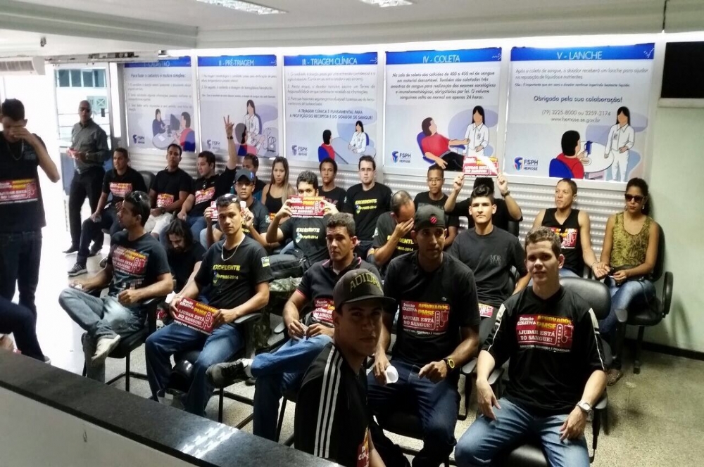 Aprovados no concurso da Polícia Militar de Sergipe [mas que ainda não foram convocados] realizaram um ato na tarde desta sexta-feira, 23, com doação de sangue no Hemocentro de Sergipe (Hemose). Cerca de 70 militares realizaram o ato com o objetivo de mostrar à sociedade sergipana que estão dispostos a contribuir com a segurança pública do estado. O grupo luta para que a convocação aconteça ainda no 1º semestre de 2015.