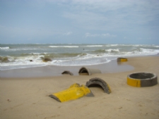 Há cerca de um ano o mar vem invadindo a Praça de Eventos, na Orla de Atalaia. No local são encontrados diversos destroços do que foi parte da praça. Indiferentes ao perigo, é comum ver banhistas e surfistas no mar junto a manilhas e pedras, o que pode ser fatal para os mais descuidados. Indiferente, a população se banha em meio a destroços