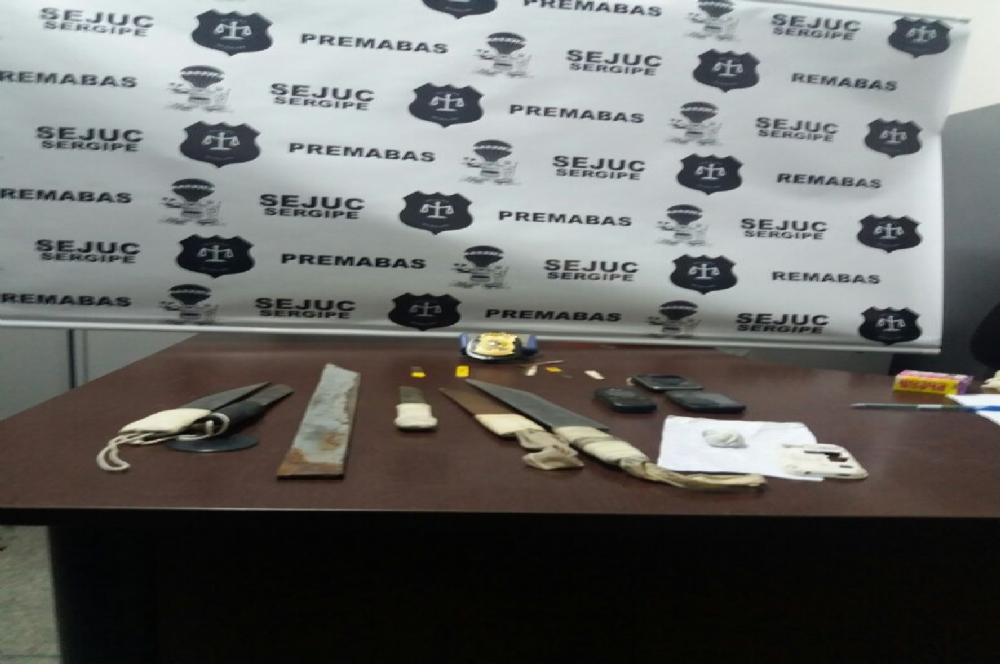 Doze armas brancas, 03 celulares e uma pequena quantidade de drogas foram encontradas por agentes e guardas prisionais lotados no Presidio Regional Juiz Manoel Barbosa de Souza (Premabas), no município de Tobias Barreto, durante revista realizada na tarde da última terça, 05, na Ala A do Pavilhão 03.