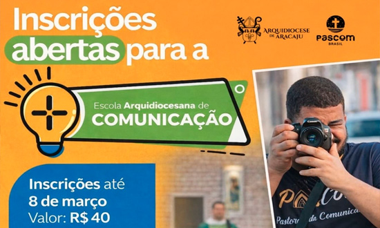 Estão abertas as inscrições para a Escola Arquidiocesana de Comunicação, iniciativa da Arquidiocese de Aracaju direcionada aos agentes da Pastoral da Comunicação (Pascom) das paróquias e comunidades da Arquidiocese.