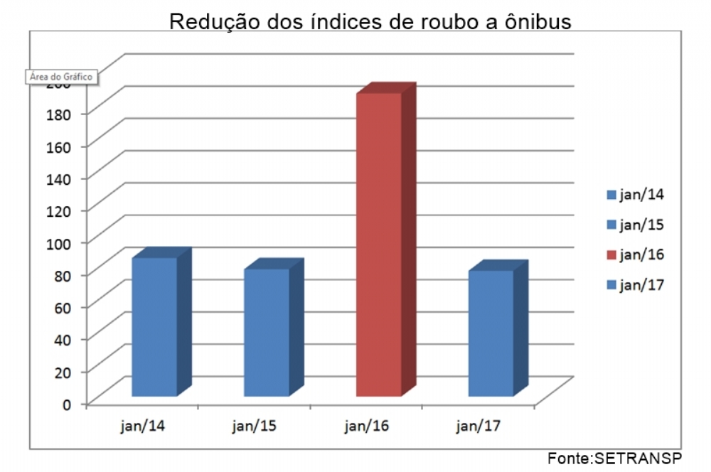 Gráfico divulgado pelo Setransp mostra redução do número de assaltos a ônibus em janeiro de 2017
