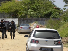 Os policiais seguiram junto com o acusado até o local onde o carro foi incendiado e lá refizeram o momento em que os pistoleiros desceram do veículo utilizado no crime, atearam combustível no carro e fugiram em outro carro.