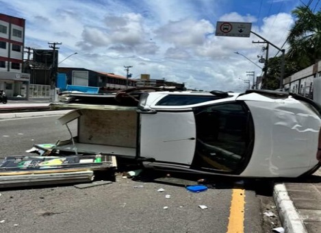 Um veículo capotou e atingiu um outro veículo na manhã desta terça-feira, 17, no cruzamento das avenidas Augusto Franco e Gonçalo Prado Rollemberg Leite, em Aracaju.
