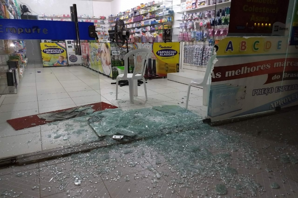 Bandidos arrombaram as portas de uma agência bancária, uma farmácia e uma loja de telefonia em Umbaúba, na madrugada desta segunda-feira, 21. Os estabelecimentos ficam dentro de uma galeria da cidade.