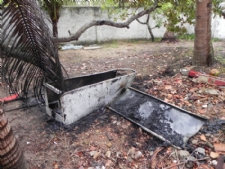 A geladeira foi jogada no quintal e queimada