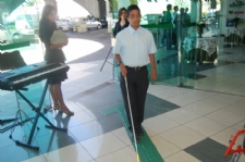 Convênios Aleanderson Augusto testa o piso tácltil na agência do Banese