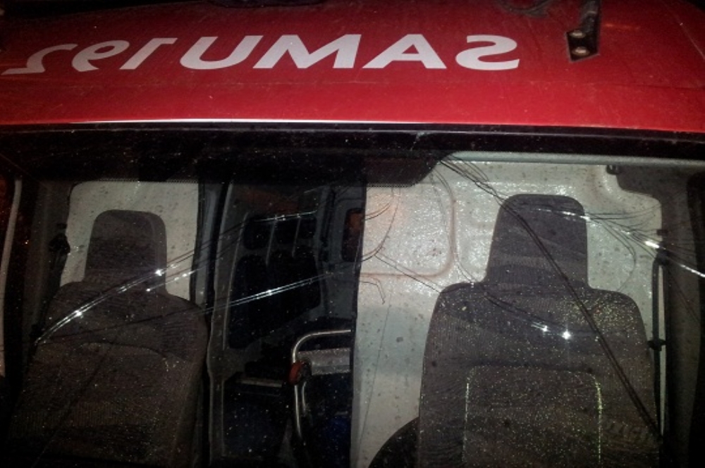 Ambulância atingida por cadeira na base de Socorro