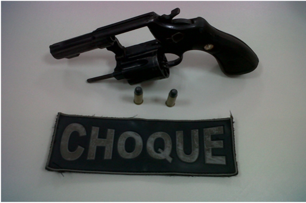 A Polícia Militar, através do Batalhão de Polícia de Choque (BPChq), apreendeu por volta das 11h30min, dia 25, na Rua Cabo Jordino – Bairro 18 do Forte, Zona Norte da capital, Um Revólver Calibre 38 MM com numeração raspada, 02 Munições Intactas e R$ 48 em poder de um menor de 17 anos.