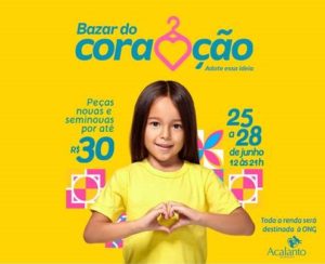 De 25 a 28 de junho, o Shopping Jardins, o Instituto João Carlos Paes Mendonça de Compromisso Social (IJCPM) e o Acalanto Sergipe realizam o ‘Bazar do CorAção’. A ação solidária acontecerá ao lado da loja Mundo Verde, no centro de compras localizado no bairro Jardins, em Aracaju (SE), e o atendimento ao público será das 12h às 21h.