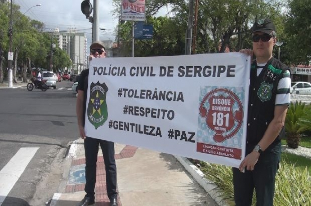 Policiais e delegados estiveram juntos na manhã desta terça-feira, 30, em ação intitulada ‘Blitz da Paz’ em alguns semáforos de Aracaju e outros quatro municípios. A ação é dedicada ao Dia Mundial da Não Violência. A diretora do DHPP, Thereza Simony, por exemplo, reforçou a importância da população em continuar informando, via o disk denúncia, detalhes que possam levar a Polícia a criminosos.