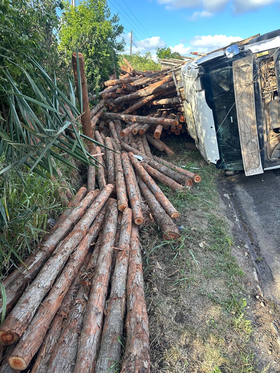 Durante as ações de combate ao incêndio, os bombeiros se depararam com um tombamento de uma carreta com carregamento de madeira na rodovia próxima a ocorrência. No momento, foi preciso interromper o combate para prestar socorro ao condutor do veículo. “Fizemos os primeiros atendimentos e estabilizamos a vítima até a chegada da ambulância do Samu”, ressalta o tenente.