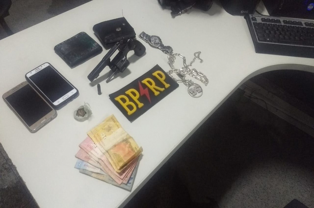 Diante da situação, os militares realizaram uma aproximação policial e deram uma ordem de parada que não foi obedecida e acabou culminando num acompanhamento tático que veio a interceptar o veículo em fuga nas proximidades do Centro de distribuição de um supermercado, momento no qual o carona arremessou uma arma de fogo num local ermo. Após a adoção de procedimentos de segurança, os radiopatrulheiros procederam com uma busca pessoal e veicular e efetuaram também uma varredura pelo local, onde acabaram encontrando um revólver calibre .32 com uma munição.