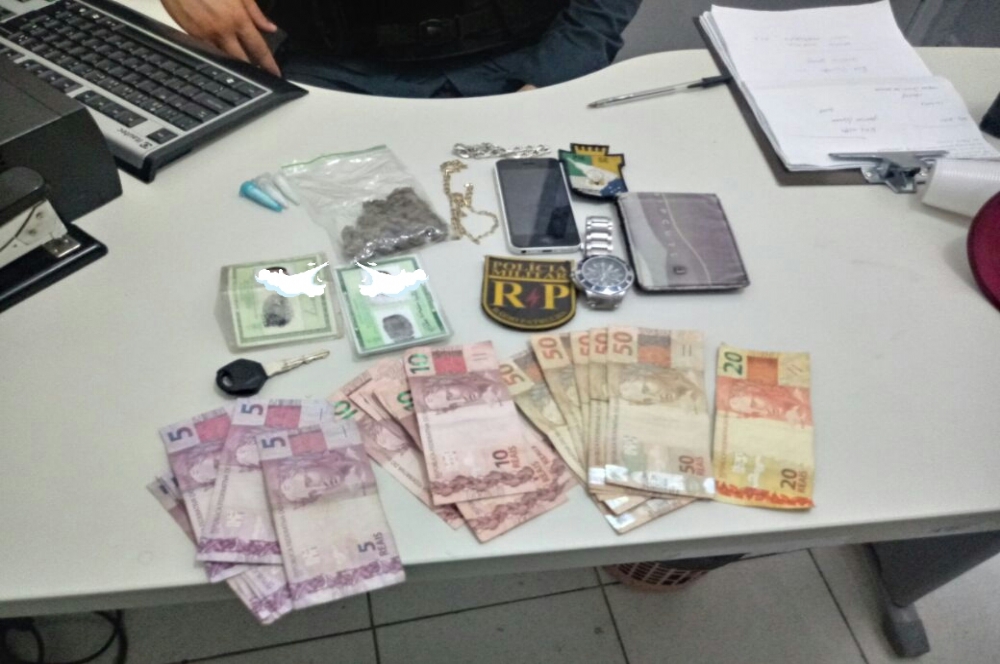 | Foi apreendido maconha, capsulas de cocaína e dinheiro (Foto: BPRp) |