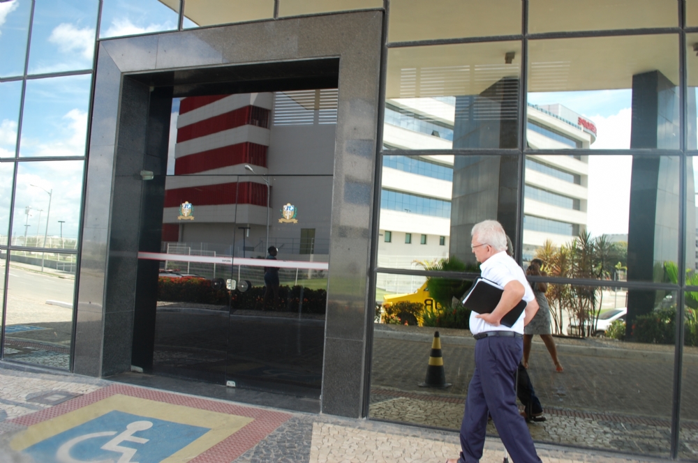 | Bosco Teles chega ao Fórum para receber o documento de reintegração de posse (Foto: Portal Infonet) |