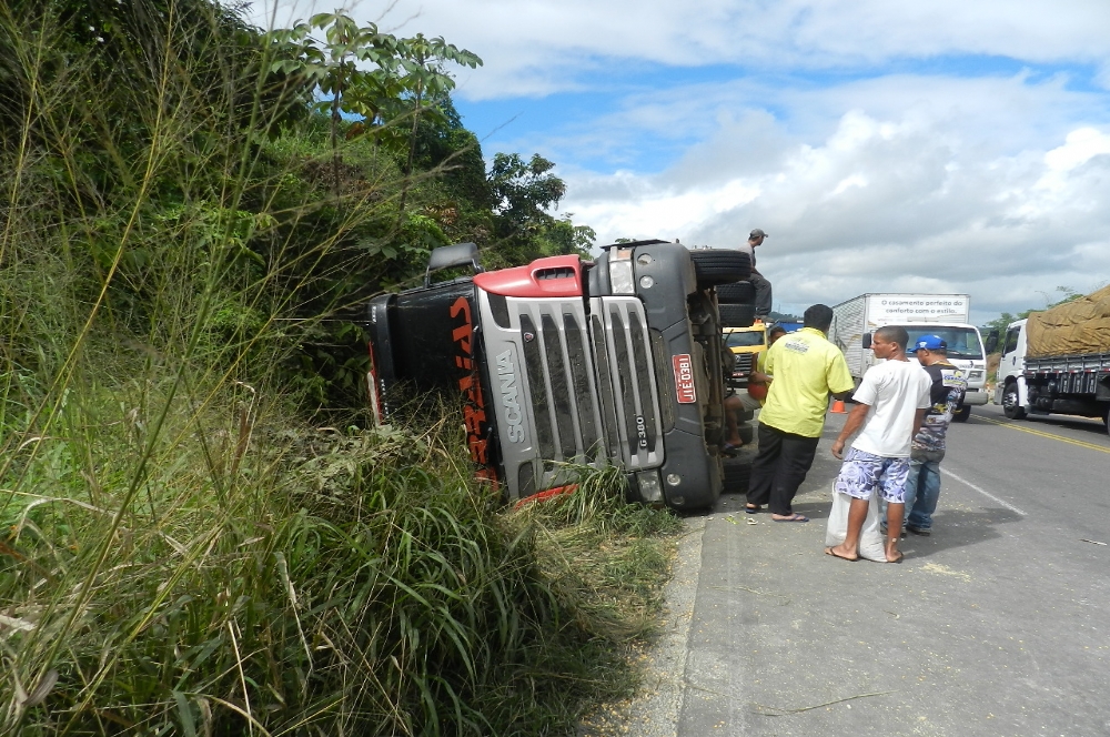 Uma carreta Scania com placa de Brasília tombou na tarde de terça-feira, 25, próximo ao trevo do município de Japaratuba na BR-101. O condutor do veículo não sofreu ferimentos, mas uma criança de oito anos ficou ferida.