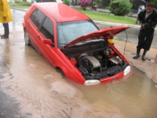 As obras inacabadas da Deso espalhadas pela capital sergipana causaram mais um transtorno na manhã desta quarta, 19. O técnico em refrigeração Sérgio Maurício teve seu carro modelo Golf ‘engolido’ por um buraco na rua Jornalista Santos Santana, bairro Jardins. A parte dianteira do veículo foi danificada.