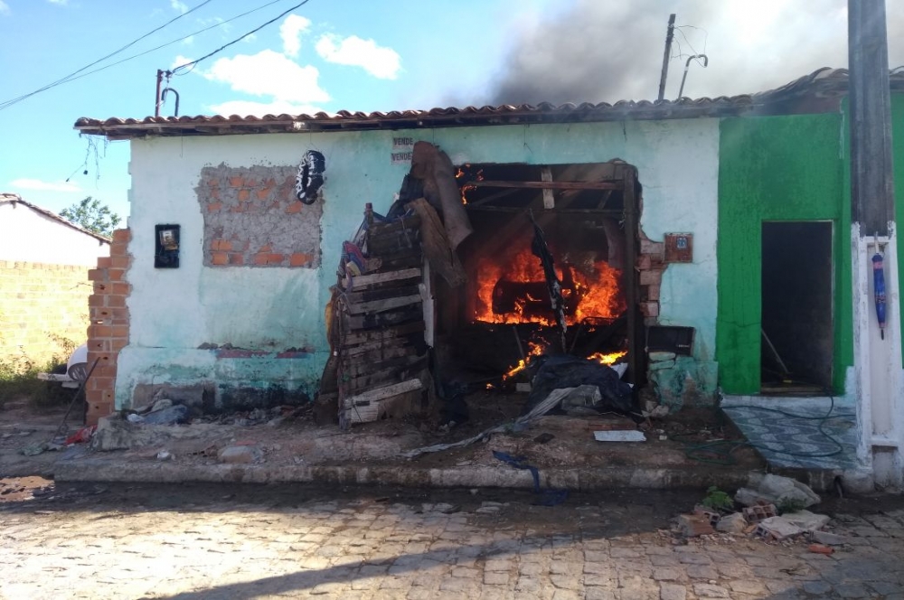 Uma oficina abandonada ficou em chamas no município de Pedra Mole, na madrugada desse último domingo, 25. O fogo foi iniciado em um carro que estava dentro do local.
