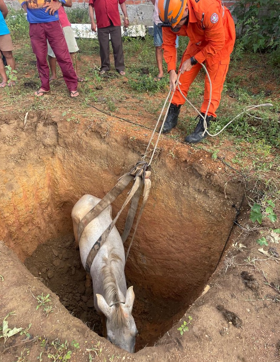 Um cavalo foi resgatado pelo Corpo de Bombeiros Militar de Sergipe (CBMSE) após cair em um buraco de aproximadamente 2,5 metros de profundidade no povoado Batinga, em Ribeirópolis. A ocorrência foi atendida na tarde desta terça-feira, 21.