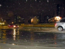 Canal próximo ao “Batistão” transbordou e carros tiveram dificuldade para passar