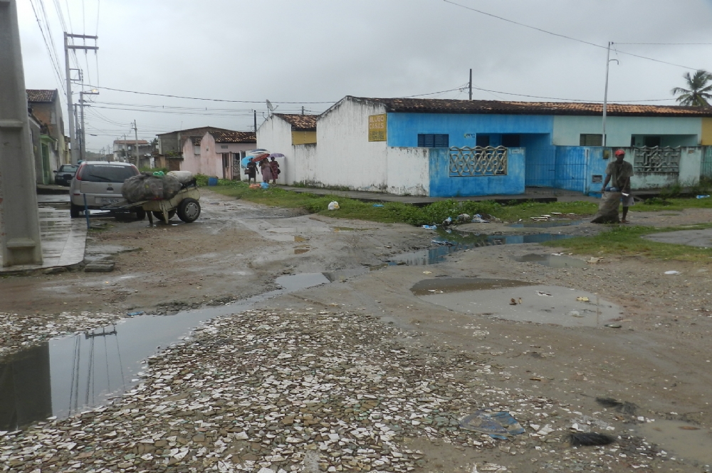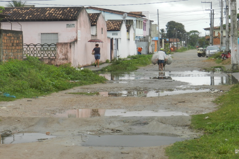 O comerciante Luiz Carlos de Jesus faz entrega de água mineral com sua bicicleta. Ele comenta que seu meio de transporte quebra com frequência por conta dos buracos que existem na localidade. Sobre a chuva, ele diz que as ruas do conjunto ficam um caos. "É buraco, lama e se eu passar um dia aqui dizendo os problemas que tem ainda é pouco. A situação é precária. Esse conjunto é o pior que tem e mesmo que chame a prefeitura, nada é resolvido. Aqui o povo reza para não chover", relata Luiz.