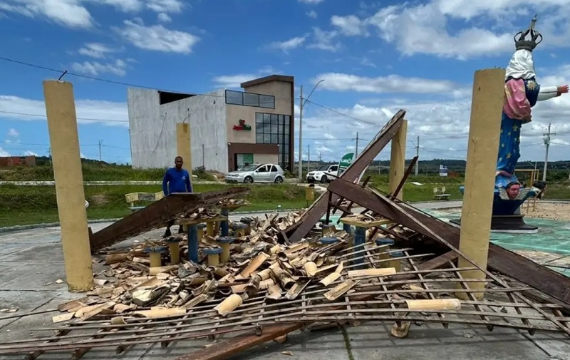 A cobertura de um quiosque desabou na manhã desta terça-feira, 17, e deixou uma pessoa ferida no município de Japaratuba, no interior do estado. A estrutura fica localizada ao lado da estátua de Nossa Senhora da Saúde, na entrada da cidade.