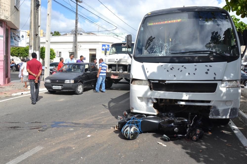 | Moto fica presa na frente de microônibus (Fotos: Cássia Santana/Portal Infonet) |