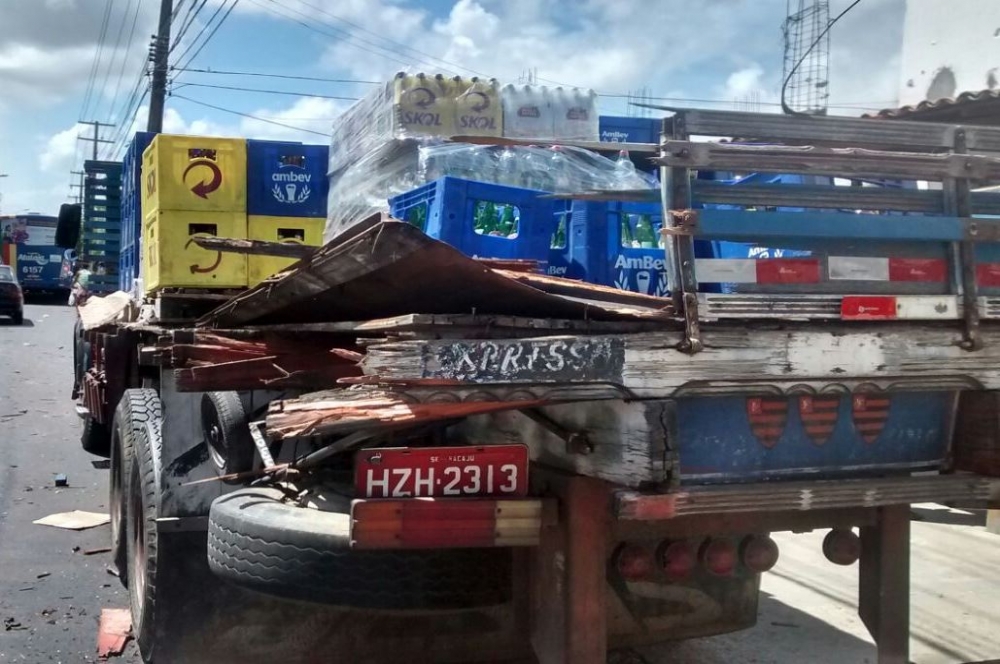 Emanuel dos Santos, que é proprietário do caminhão usado pela granja, conta que o condutor tentou desviar de outro veículo e acabou colidindo no fundo do caminhão carregado de bebidas, que estava estacionado na avenida. “Meu caminhão é usado por uma granja de Maruim. Os funcionários descarregaram na Aruana e estavam voltando para a granja. Eles seguiam pela avenida no sentido DIA, daí o motorista tentou desviar de outro carro, mas acabou batendo no caminhão que estava parado”, conta.