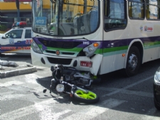 O internauta José Jorge flagrou um acidente de trânsito, registrou imagens e as enviou à redação do Portal Infonet. Um ônibus do sistema de transporte público de Aracaju, que faz a linha 409-Riomar/DIA, chocou-se com uma motocicleta. No veículo de duas rodas estava apenas o condutor, que saiu ileso da situação.