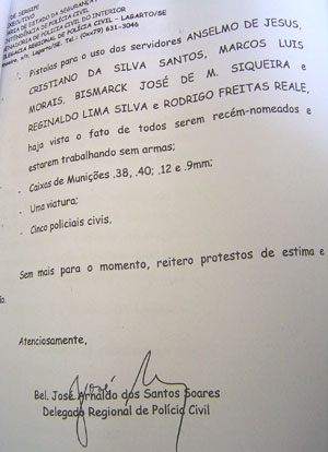 efetivo policial em Lagarto, bem como um melhor aparato técnico, como armas, viaturas e condições de trabalho para os policiais que atuam no município. Um documento com as reivindicações da comissão foi entregue à secretária que se comprometeu a analisar o documento e as possibilidades de atender às solicitações.