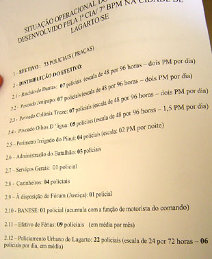 Confira a seguir o documento com o levatamento do efetivo policial do município de Lagarto: