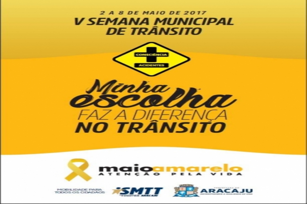 Começa na próxima terça-feira, 2, a quinta edição da Semana Municipal de Trânsito, evento que abre as atividades do 'Maio Amarelo' em Aracaju. Neste ano, o tema da mobilização é ‘Minha Escolha Faz a Diferença', com o objetivo de atrair a atenção da sociedade para os atos corriqueiros que são de extrema importância para o dia a dia no trânsito. A abertura oficial será realizada às 8h30, no dia 2 de maio, no auditório do SEST/SENAT.