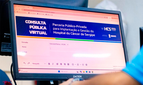 Com o objetivo de promover a participação da sociedade no processo de tomada de decisões da gestão, o Governo de Sergipe, por meio da Secretaria de Estado da Saúde (SES), disponibilizou uma consulta pública virtual por um prazo de 30 dias corridos, contados a partir de 1º de dezembro de 2025, para discutir o edital da Parceria Público-Privada (PPP) destinada à gestão, operação e manutenção do Hospital do Câncer de Sergipe Governador Marcelo Déda.
