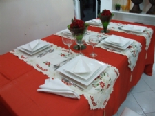 Ela instrui que ao escolher a toalha da mesa é bom observar se ela está com o tamanho adequado. “Não pode estar demasiadamente comprida, para não enrolar nos pés das pessoas, e nem curta demais. Uns 30 cm de caimento para os lados são adequados”, indica. O tecido pode ser de cor única, no caso de usar enfeites típicos, ou com motivos natalinos. Nesse caso, o ideal é que os pratos sejam brancos. “Pode-se usar arranjos de flores naturais, velas, guardanapos grandes decorados e, ainda, enrolar os talheres com uma fita verde ou vermelha”, acrescenta.